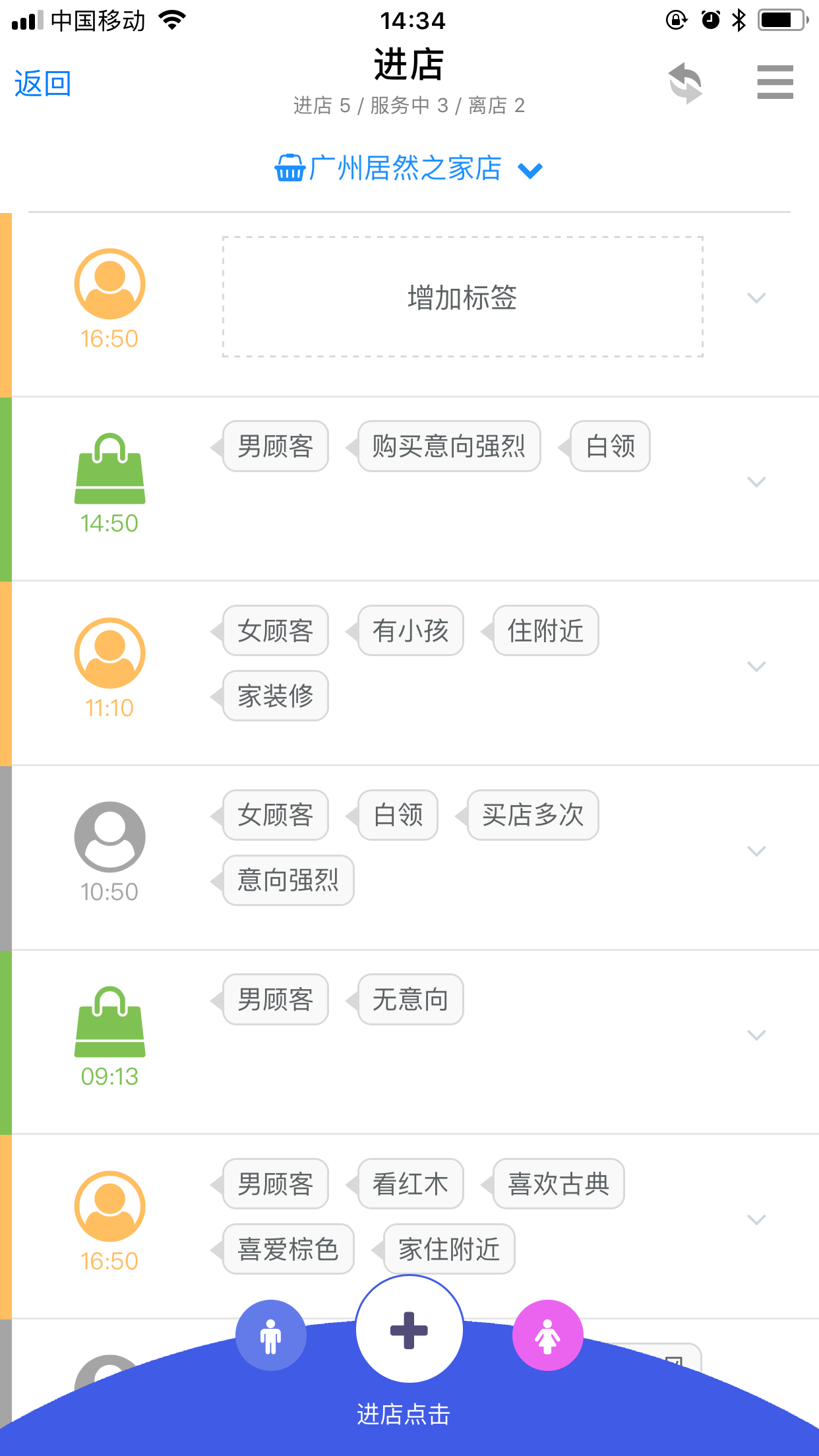 手拿手机或平板跟随客人,随时扫码记下客人意向商品